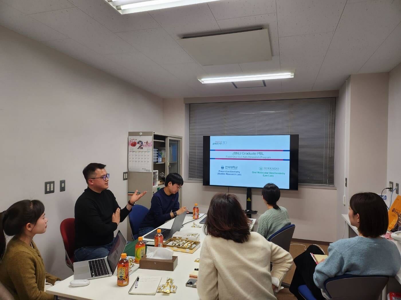 2026年2月27日、韓国・全北大学からKim先生とその学生さんがご来訪し、生化学教室のメンバーと研究発表会を行いました。夜は、恒例のジンギスカンを食べにサッポロビール園へ行きました。興味深い研究の話と楽しい時間をありがとうございました!